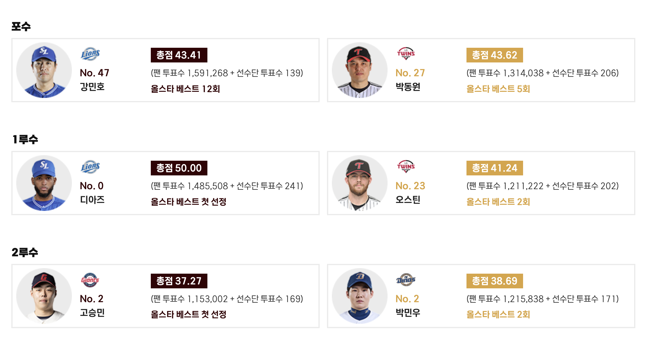 KBO 올스타전 '베스트12' 선정은 팬 투표 70%와 선수단 투표 30%의 비율로 반영되어 각 리그 포지션별 12명, 총 24명의 선수로 구성됩니다. 올해 팬 투표는 6월 2일부터 6월 22일까지 진행되었으며, 중간 집계는 6월 9일과 6월 16일에 발표되어 팬들의 뜨거운 관심을 반영했습니다. 최종 발표는 6월 23일에 이뤄졌습니다. 베스트12에 선정되는 것은 선수 개인에게는 엄청난 영광이며, 팬들의 변함없는 지지를 확인하는 자리입니다.